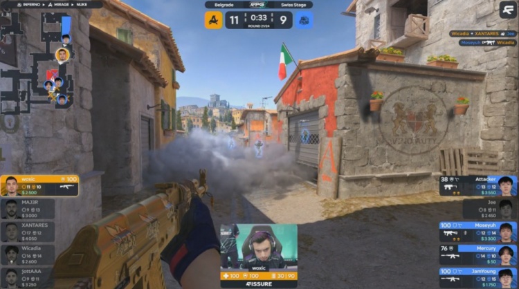 第21局Jee大狙看香蕉道,狠人摸A二楼,Moseyuh来A连接找人,Wicadia锅炉房爆弹,Mercury站住包点,白菜扫荡A点双杀,Moseyuh也拿双杀,woxic三杀后被Mercury补掉,Aurora11-10Tyloo。