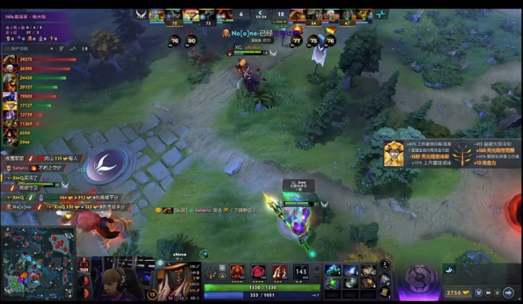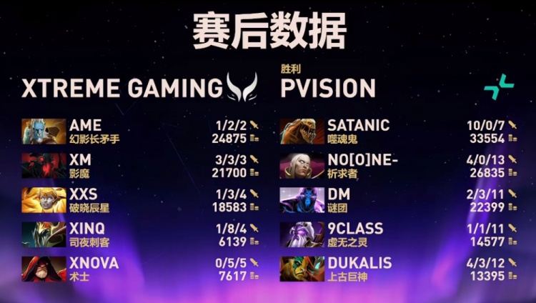 天辉XG:Xxs破晓晨星、XinQ司夜刺客、xNova术士、Xm影魔、Ame幻影长矛手。