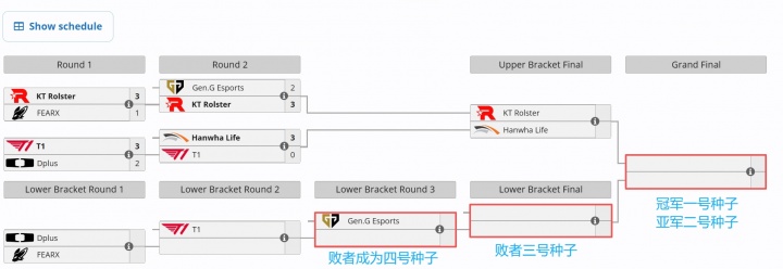 目前LPL四号种子席位还非常不明朗,但LCK这边四号种子将在GEN.G/T1/DK/BFX之中决出!