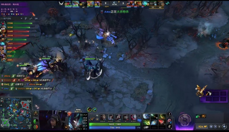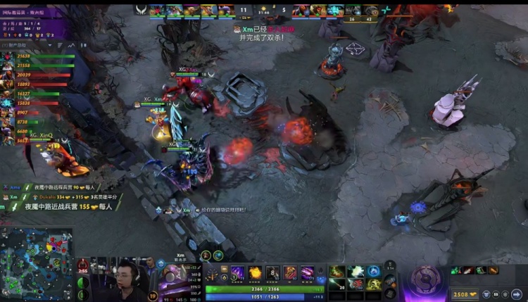 【21分钟】Parivision控魔方,XG包抄过来,xm火枪在队友正面交控制的情况下,先秒Dukalis神谕者,再杀Satanic敌法师。又返回来捉到偷经验符的9Class炼金,XG相当于一波0换3,经济拉平。