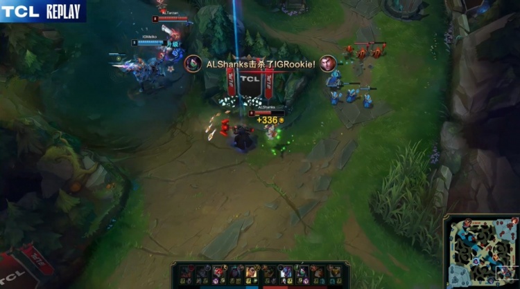 【14:48】TheShy剑魔没闪下路1v3被杀,AL推掉iG下路一塔,经济领先4k。