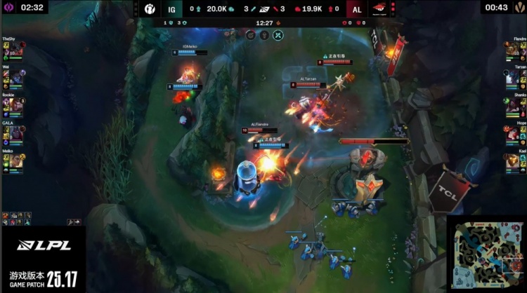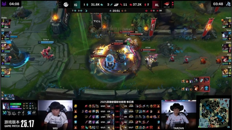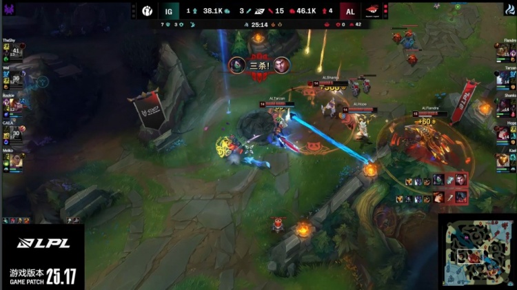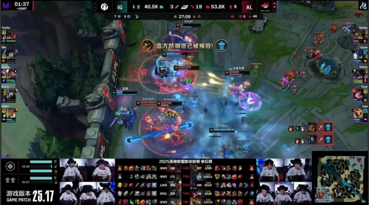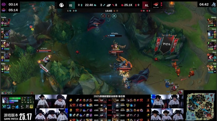 直播吧9月14日讯 2025LPL季后赛继续进行,最终AL三图轻松暴打横扫iG,晋级下一轮,iG惨遭淘汰。