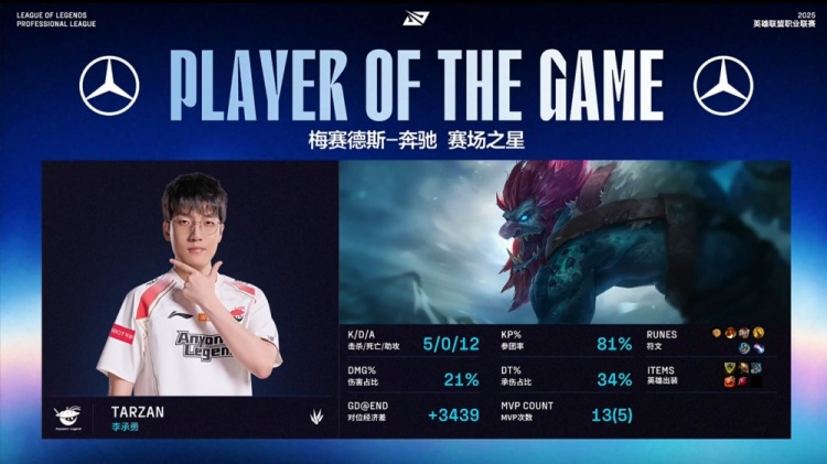 【19:56】GALA下路草丛被Tarzan巨魔闪现咬住后,Tarzan柱子将其卡住击杀,AL回头吃掉厄塔汗,AL经济领先5k。