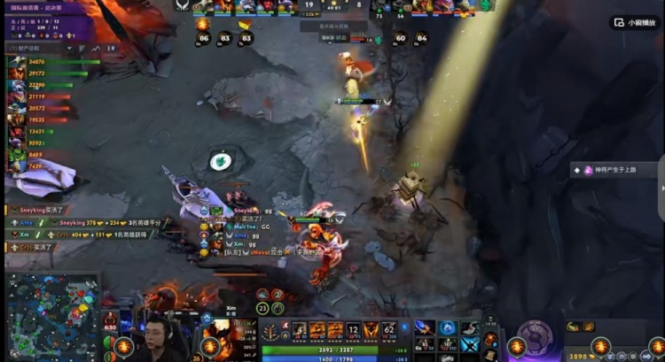 【28分钟】肉山团,第一波Xxs大鱼跳踩+Xm影魔摇大解决掉了Sneyking骨法,回头Malr1ne兽王找到了Ame斯温但是XinQ毒狗给关了!Ame斯温起身开出BKB+大招!三刀切死兽王两刀切死滚滚!XG打出0换5团灭Falcons,回头拿下二代肉山!Ame斯温带盾!随后XG再拿魔晶!拉开一万经济差!