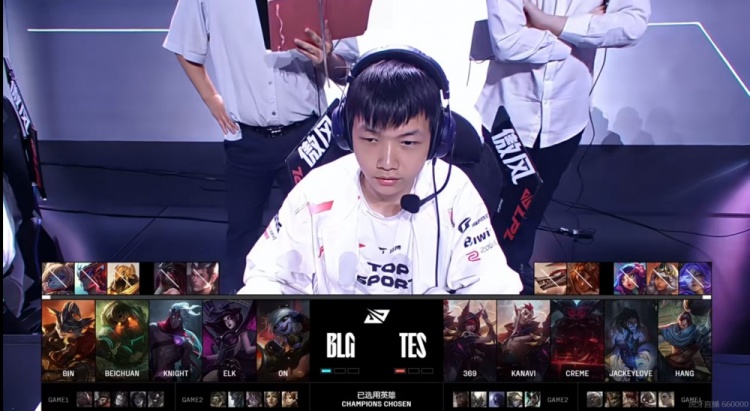 BLG:上单Bin、打野Beichuan、中单knight、下路Elk、辅助ON