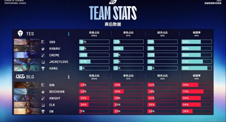 BLG:上单Bin、打野Beichuan、中单knight、下路Elk、辅助ON