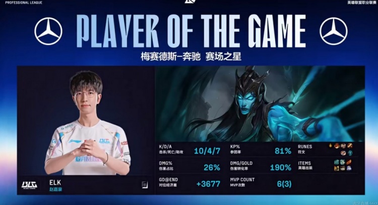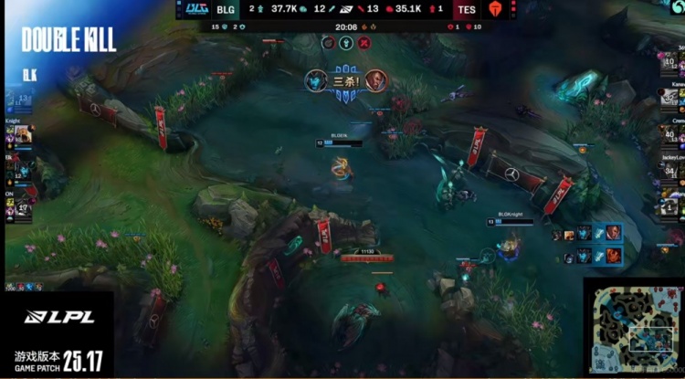 【23:10】野区遭遇Creme岩雀白给,随后knight沙皇一推配合队友秒了JKL卢锡安!又交出双杀越塔强杀Kanavi纳亚菲利!BLG拆掉中上双二塔,Elk卡莉斯塔贴脸开滑结果抗塔了!送出一千块给到了369科加斯!双方拉开!