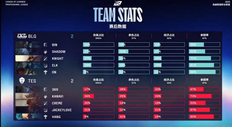 比赛进入中期,Hang布隆切惩戒帮助队伍抢到厄塔汗,决胜大龙团BLG拿下大龙之后Elk卡莉斯塔直接贴脸开滑,配合ON烈娜塔及时救难复活拿下三杀!Kanavi纳亚菲利切后排未果!BLG双C一波3+2,再次团灭TES,一波结束扳平了比分!