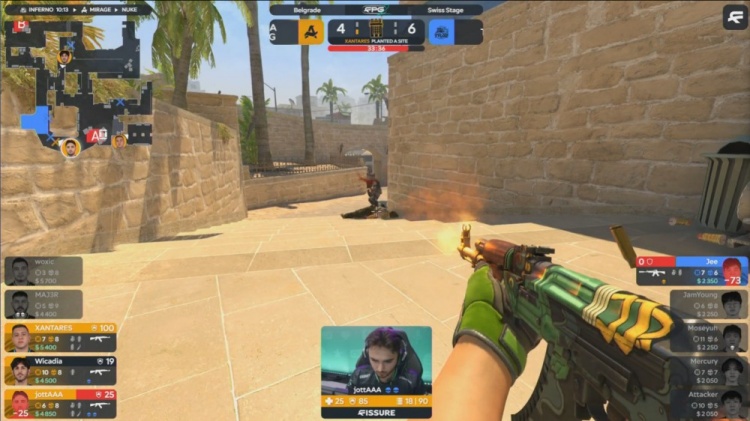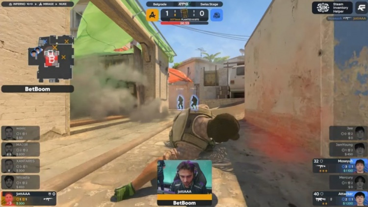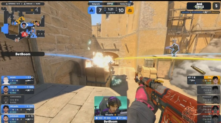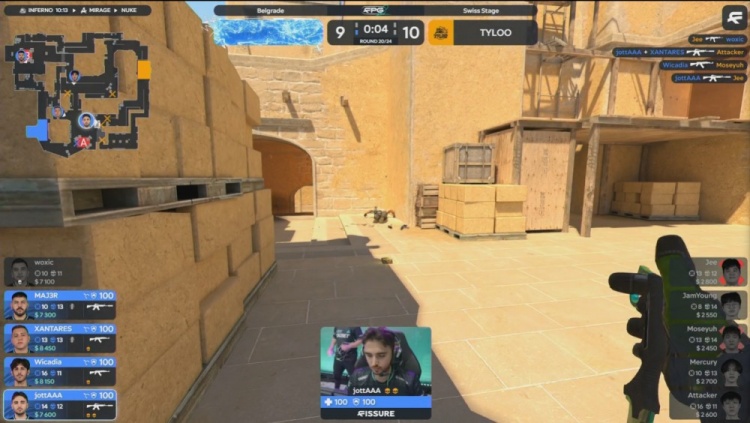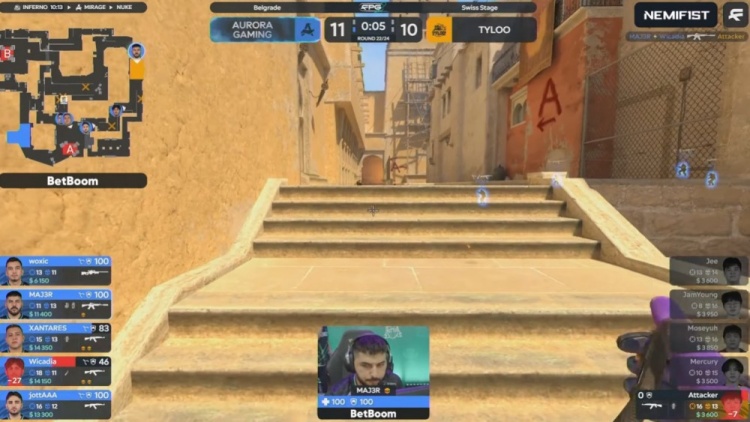 第10局A1刚枪,Maj3r拿到双杀,Wicadia摸到CT击杀Moseyuh,Jee残局1v3,Aurora在A下包,jottaaa架住CT击杀Jee,Aurora4-6Tyloo。