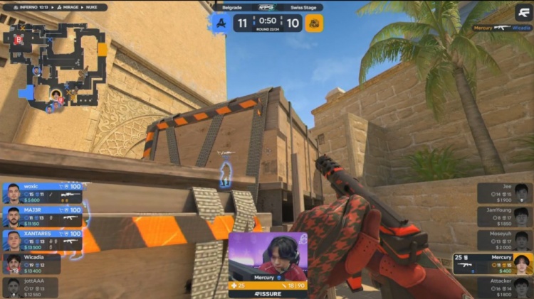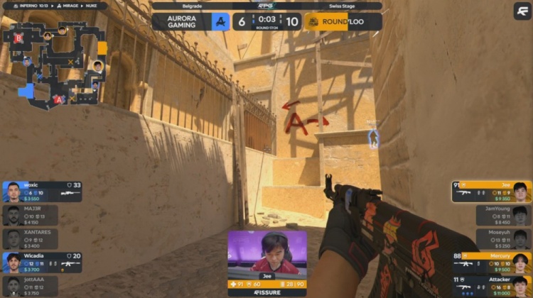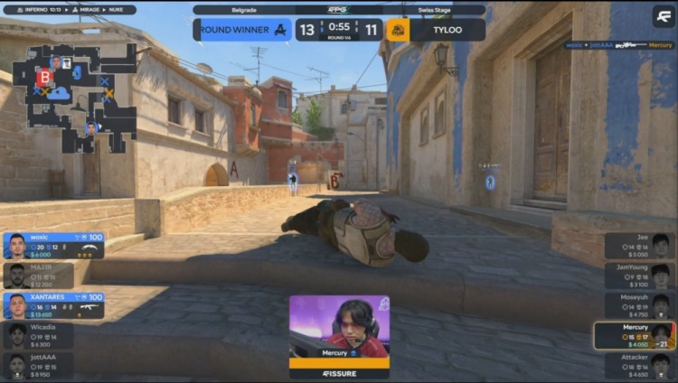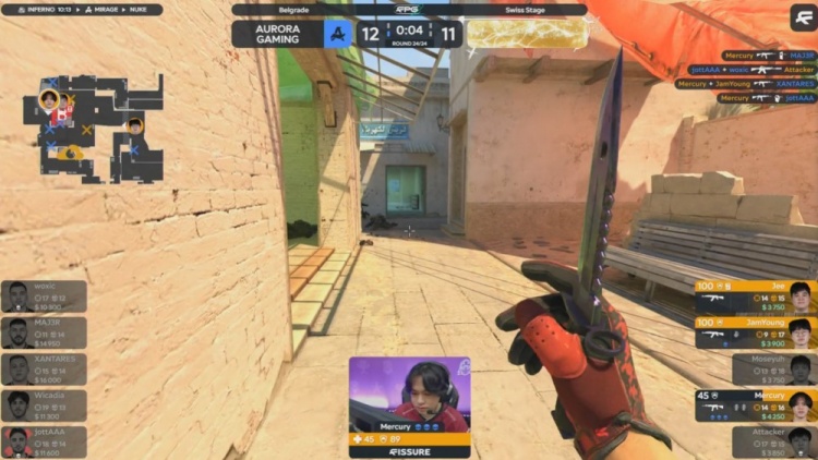 第23局中路小鞠拉掉Wicadia,Tyloo选择打B,Aurora防守不力,Mercury站在包点轰出三杀,Aurora12-11Tyloo。