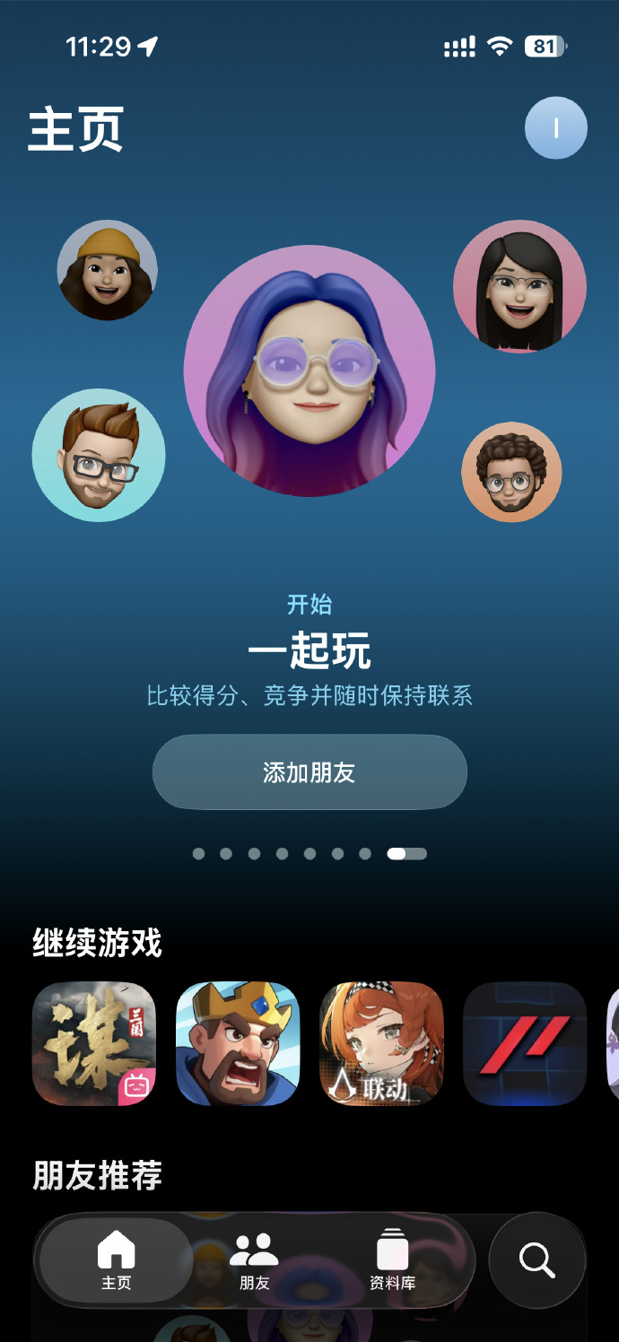 通过此应用玩家可以访问「App Store」和「Apple Arcade」上的完整游戏资料库,并通过“信息”等方式来邀请好友一同游玩。当前版本的应用包括主页、朋友、资料库三个主要板块,内置榜单推荐、当前热门以及官方活动。