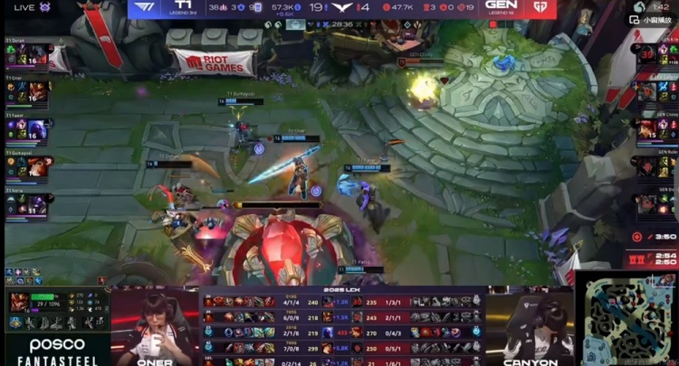 【21:43】T1拿下荆棘厄塔汗!T1拆掉GEN上二塔,GEN也是换掉了T1下路双外塔!