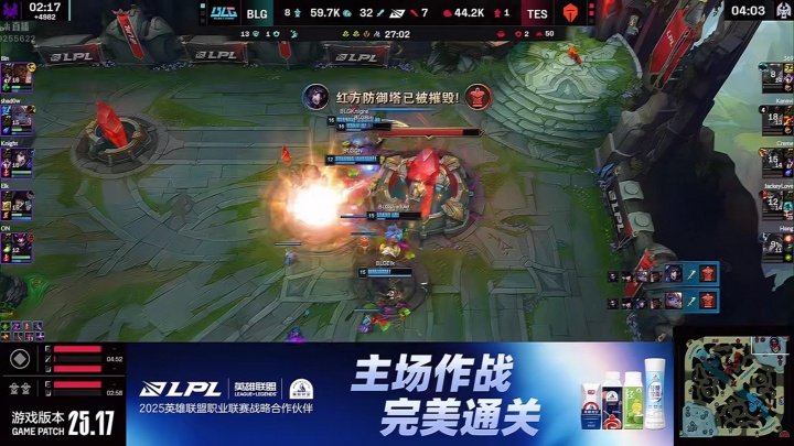 直播吧9月21日讯 今日LPL季后赛决赛上,TES在第四局BP中给JackeyLove选出招牌德莱文,但奈何前期劣势太大无法取得人头获取赏金,最终无缘胜利,本局比赛中德莱文战绩1-4-3!