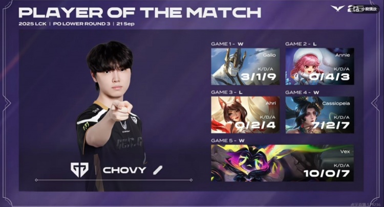 直播吧9月21日讯 2025年LCK继续季后赛阶段,今天是败者组半决赛,T1和GEN谁输将会成为LCK的四号种子!