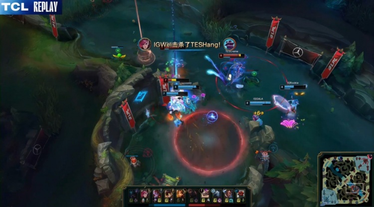 第四局前期小龙团Wei蔚三进三出杀hang拿到一血,Rookie阿卡丽站在Creme维克托立场中睡着,iG打出1换2。随后GALA中路吃兵被抓,上路TheShy雷克塞开大扑掉残血Creme后被换,TES打出1换2,双方经济差距不大。