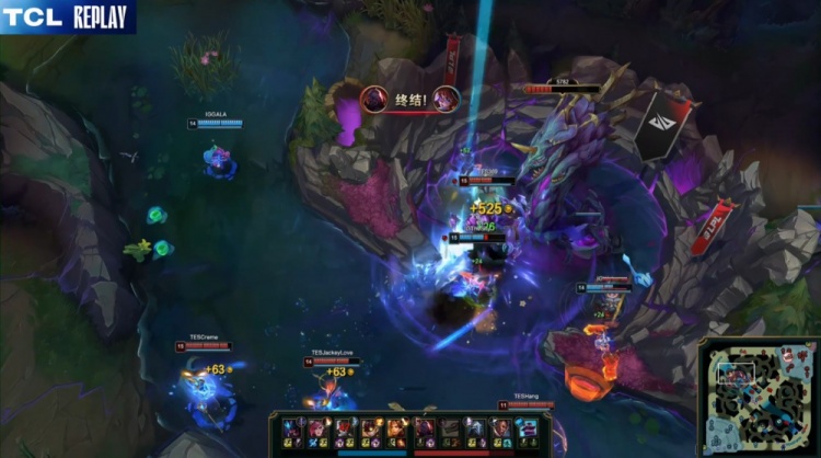【15:33】GALA吉格斯中路吃兵被Kanavi冥犬绕F6锁头,配合队友三人将其越塔击杀,Kanavi冥犬吃掉先锋,Wei拿到小龙,TheShy雷克塞推掉TES下路一塔,双方经济持平。