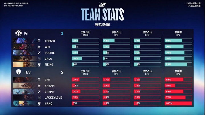Theshy挖掘机伤害占比23%,iG全队第二。