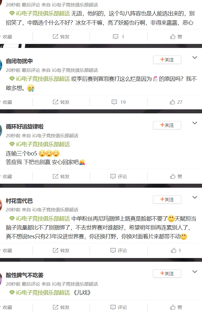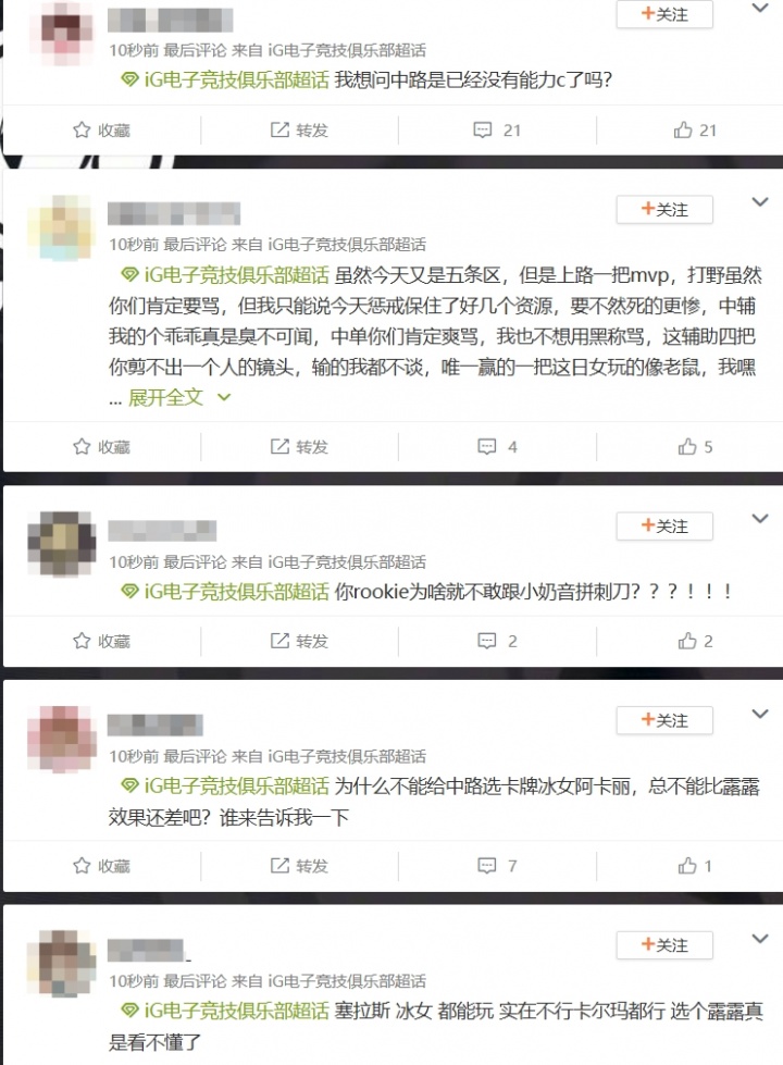 >狂喷Rookie!iG超话指责BP、肉鸡:明年别再连累别人了 中单太糯了!