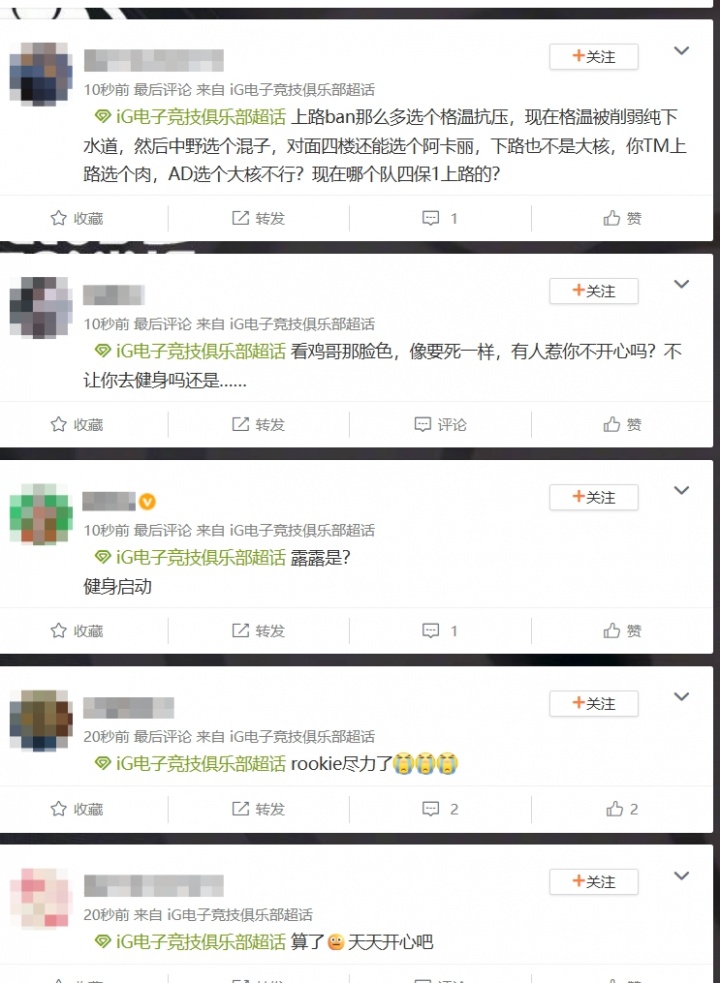 狂喷Rookie!iG超话指责BP、肉鸡:明年别再连累别人了 中单太糯了!