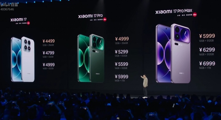 直播吧9月25日讯 在今日小米发布会上,小米创办人、董事长兼CEO雷军宣布小米17 Pro售价为4999-5999元。