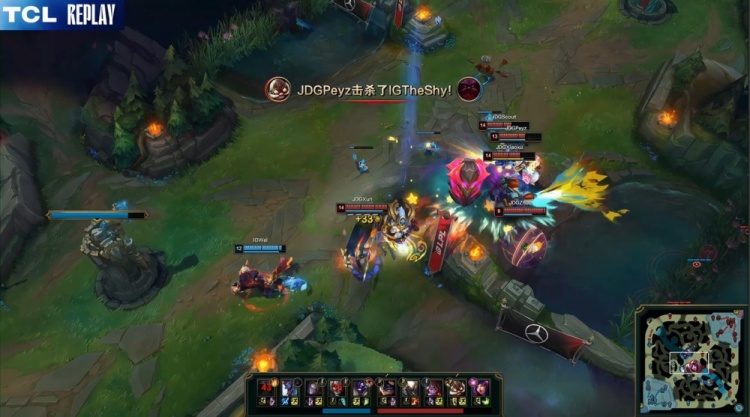 【8:12】上路混战,河道Wei被Scout阿萝拉打至残血,JDG顺势回头开巢虫,TheShy奥恩来正面叫羊撞飞Scout,Xiaoxu兰博大招洒下分割iG阵型,随后Meiko牛头带球进场却被Zhuo妮蔻击杀,iG上中野辅四人瞬间被融化,JDG打出0换4,经济领先2k。