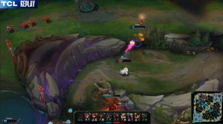 【6:26】Meiko烈娜塔河道被Zhuo洛抬飞,JDG三人集火将其击杀,Scout瑞兹再拿一个人头。