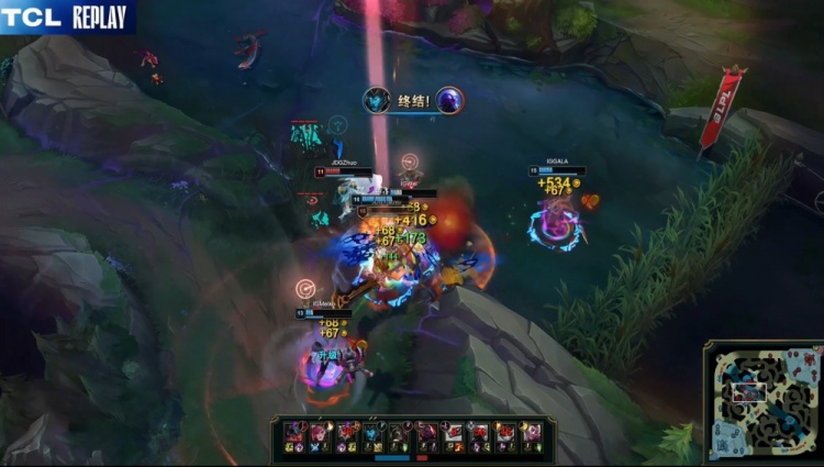 后期大龙团,Xun河道迷路被TheShy剑魔砍掉大人头,iG五打四吃掉大龙,GALA卡莉丝塔爆C帮助iG打出1换5团灭JDG,经济反超1k。最终龙魂团,iG中上各取双杀,GALA被杀但iG打出1换5,一波推平JDG基地扳回一城。