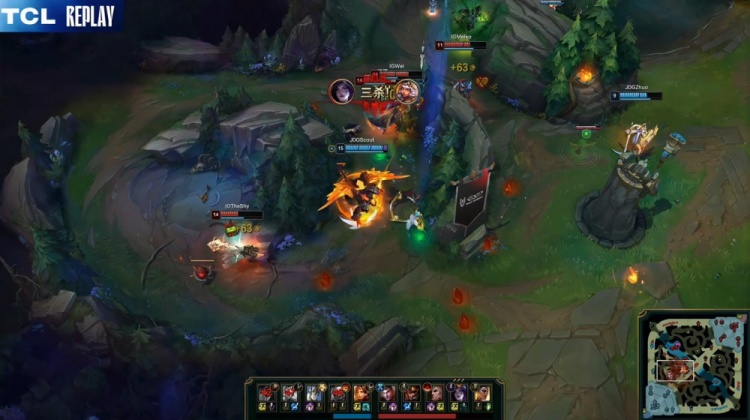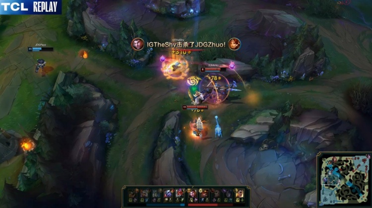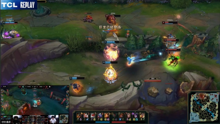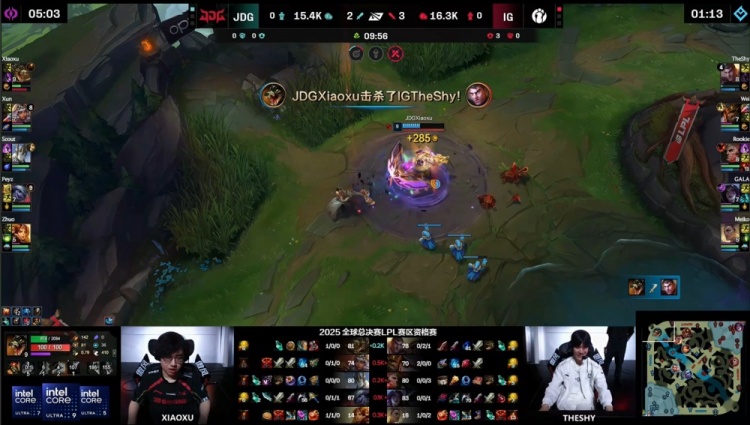 【11:49】JDG三人上路再次逮捕TheShy,iG推掉JDG下路一塔,双方经济持平。