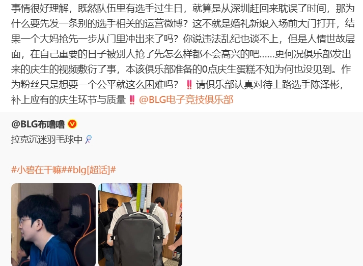 >这都能吵起来?Bin生日BLG官博发ELK羽毛球动态 选手个人粉激情互酸