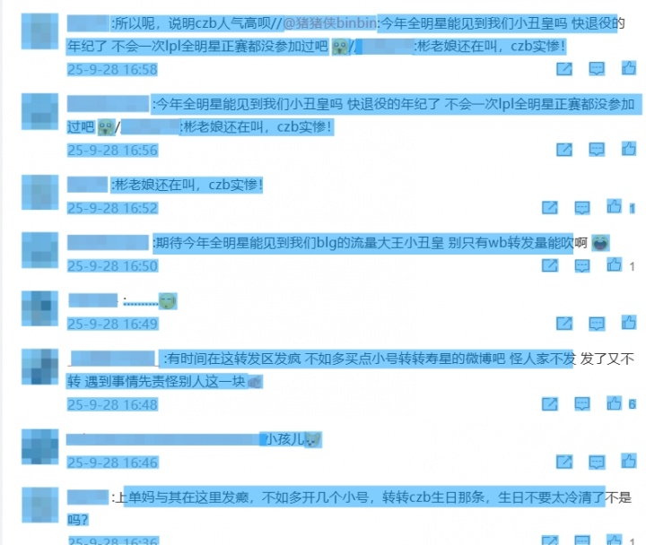 直播吧9月28日讯 今日是BLG上单选手Bin生日,BLG吉祥物发布ELK打羽毛球的动图后,引起了Bin粉丝和ELK的粉丝的内讧,双方粉丝唇枪舌剑互相攻击。