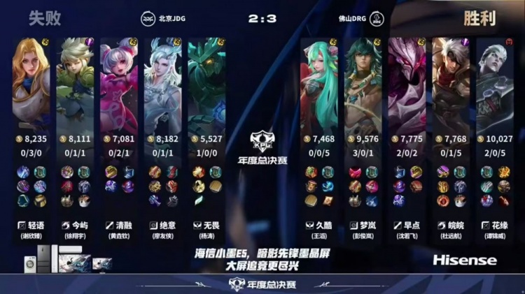 第一局:佛山DRG 0-1 北京JDG