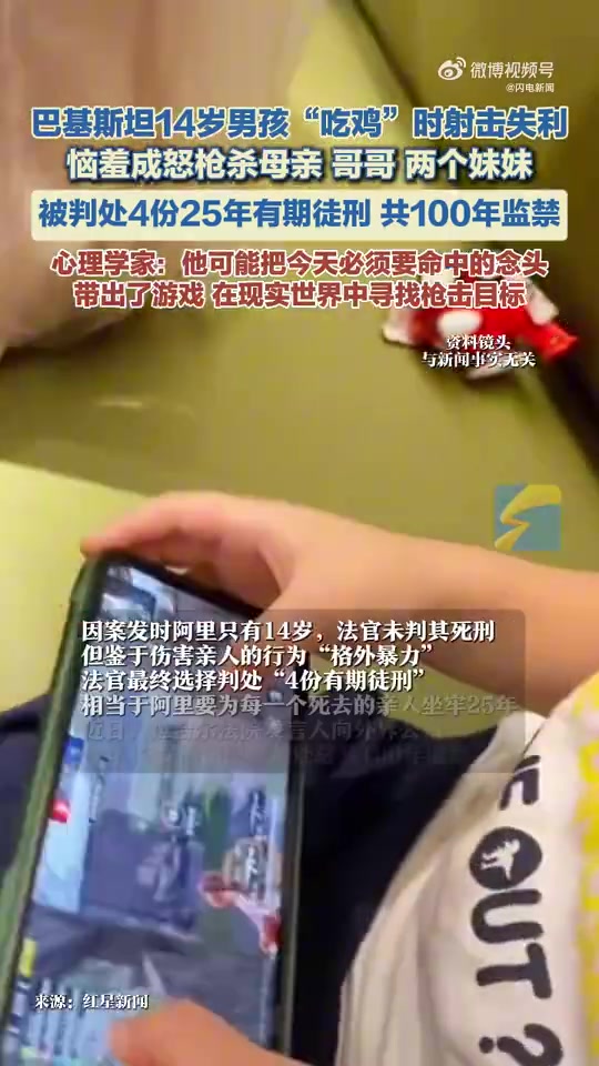 2022年,年仅14岁的巴基斯坦男孩赞恩·阿里是《绝地求生》游戏(PUBG 俗称“吃鸡”)的死忠玩家,非常沉迷其中。案发当天阿里长时间沉浸在游戏中,因为游戏中的一次射击偏离目标大发脾气。阿里的母亲长期批评他打游戏“浪费时间”,当天也对他态度冷漠,点燃了他的怒火。在母亲和两个妹妹熟睡之后,阿里拿起母亲的手枪走进卧室射杀了三人,他的哥哥泰穆尔此时也在家中,一并遭到枪杀。
