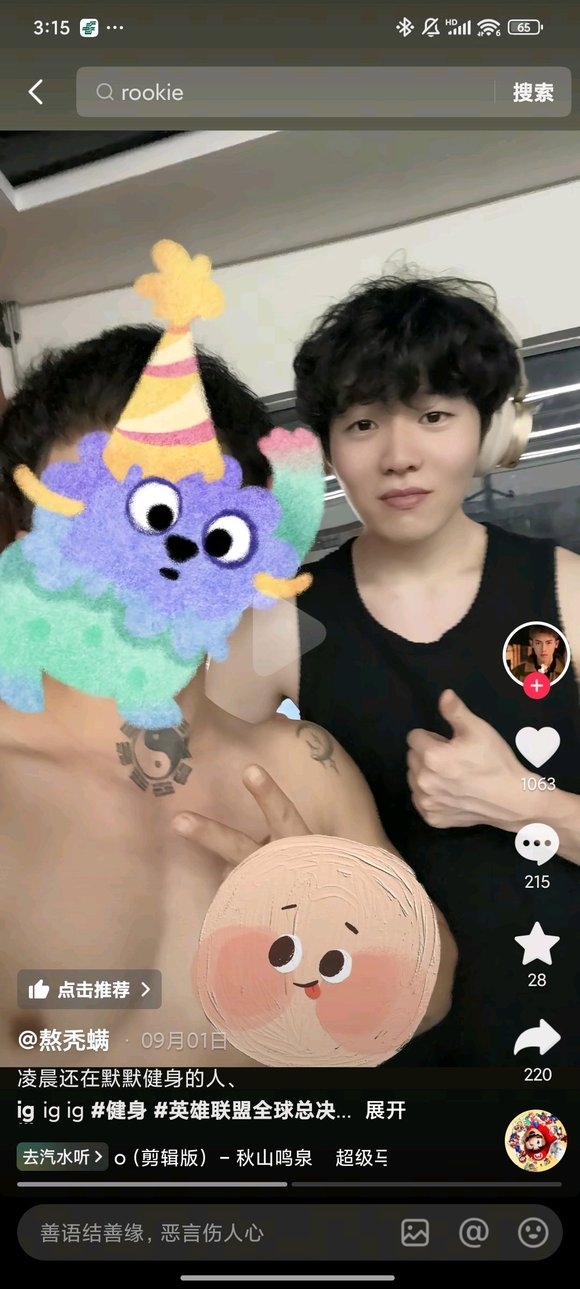 而值得一提的是,此前有网友在抖音平台发文称自己凌晨健身偶遇Rookie,并与Rookie进行合照!