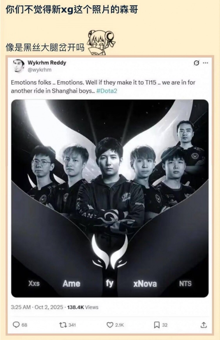直播吧10月3日讯 近日XG官宣了新赛季的阵容,国外知名DOTA2博主wykrhm也制作了一张XG新阵容的图发布在X上;