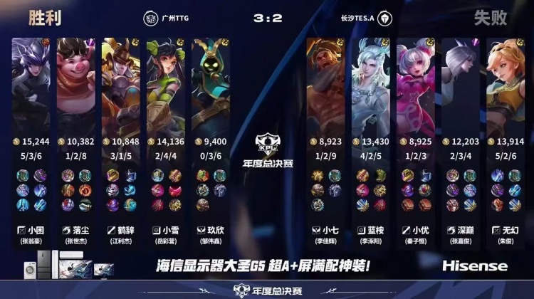 直播吧10月3日讯 2025KPL年度总决赛本场比赛是由广州TTG对阵到长沙TES.A!第一局:TES前期不断抓TTG掉点入侵压制打出经济优势,后期TES针对鲁班成功打赢团战拿下首局胜利!第二局:阿离前期拿下一血后成功滚出节奏,TES凭借阿离发挥成功快速终结比赛先拿赛点!第三局:TES前期打出优势节奏,但是中期TTG凭借配合成功将局势稳住,20分钟TTG抓到掉点后成功拿下一分!第四局:TTG凭借夏洛特的发挥成功打出压制,夏洛特单带牵扯TES成功帮助TTG扳平比分!第五局:前期TES打出优势但是主宰团TES团战失利被TTG完成翻盘,TTG成功拿下胜利!