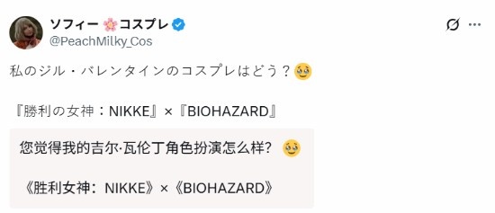 直播吧10月4日讯 继此前碍事梨体模PeachMilky在X公开了自己COS《生化危机》吉尔的视频后,今日PeachMilky又公开了几张自己COS吉尔的照片,细节看上去更加多样化,很是美观,PeachMilky问道:“你认为我COS吉尔的技术如何?”