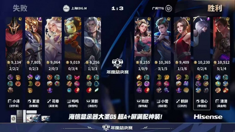 直播吧10月6日讯 2025KPL年度总决赛本场比赛是由广州TTG对阵到上海EDG.M!第一局:TTG前期通过打团制造掉点拿下优势,13分钟TTG打出0换2后成功推掉水晶拿下首局!第二局:EDG前期控下暴君但是团战被甄姬加戈娅的组合打崩,TTG成功先拿赛点!第三局:EDG前期团战 拿下优势后蚩奼直接无敌,EDG十分钟终结比赛拿下一分!第四局:双方前期互换人头,但是清清吕布完成超前发育,中期吕布接管团战帮助TTG拿下胜利!