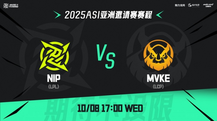 直播吧10月8日讯 2025年ASI亚洲邀请赛继续进行,今日第二场比赛由LPL赛区的NIP对阵LCP赛区的越南战队MVKE!