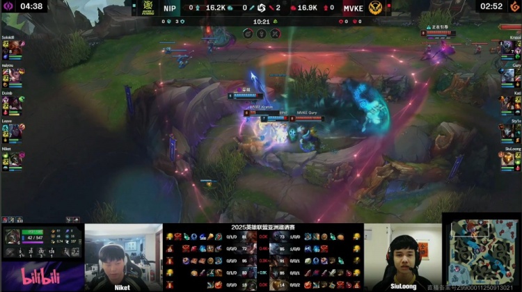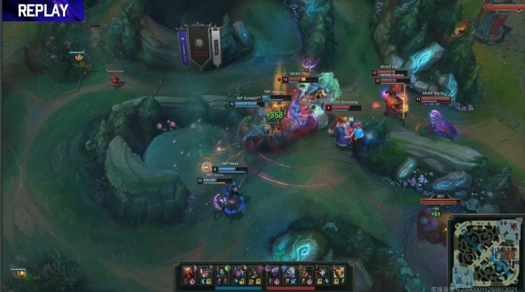 后期小龙团NIP在先手0换2的优势下,niayou赵信捅进人群反被MVKE打出2换3。大龙团MVKE全员掉线,Gury狗熊被杀,比赛暂停后无法回溯,NIP顺利吃掉大龙,后续下路一波推平MVKE基地完成逆天翻盘,以2-1赢下比赛胜利。