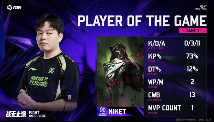 直播吧10月8日讯 2025年ASI亚洲邀请赛继续进行,最终NIP2-1战胜的越南战队MVKE。