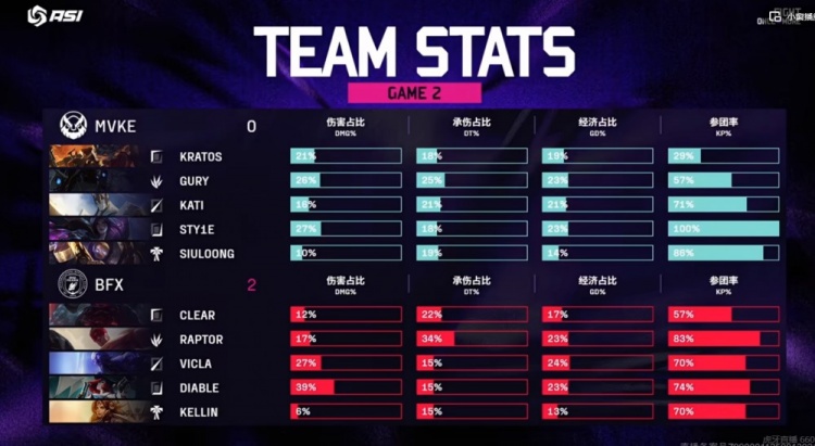 第一局:🎮两波定胜!MVKE芸阿娜独木难支 VicLa发条输出爆炸BFX赢首局