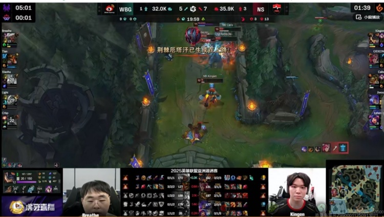 【5:30】NS拿下第一条小龙,上路WBG三人逮捕了Kingen兰博!