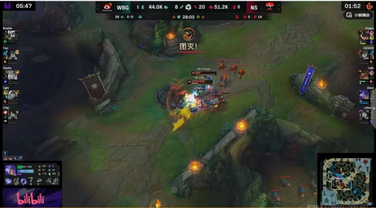 【15:31】Lehends妮蔻开大被Crisp牛头顶开,NS拿下峡谷先锋!WBG换掉第三条小龙!
