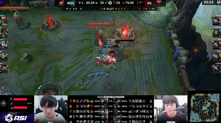 直播吧10月10日讯 2025年ASI亚洲邀请赛来到淘汰赛阶段,今天的第一场比赛是LPL独苗WBG对阵LCK的NS!