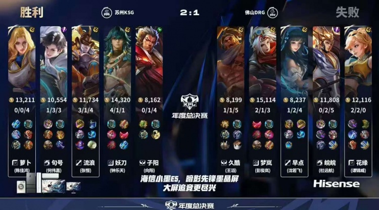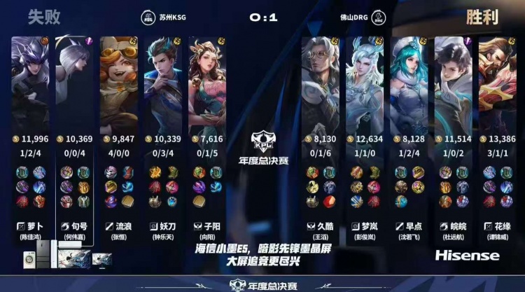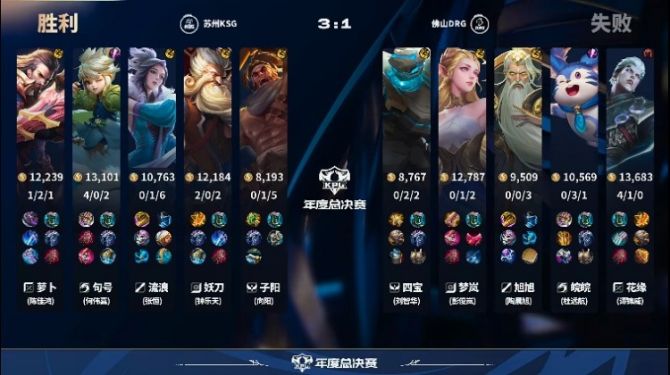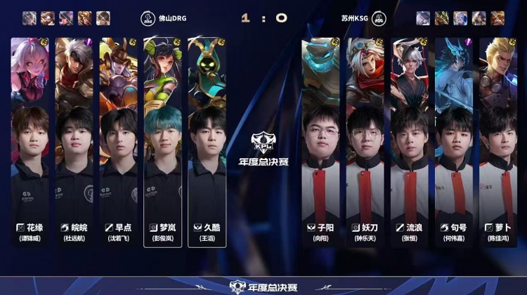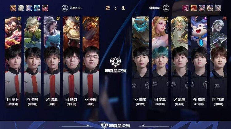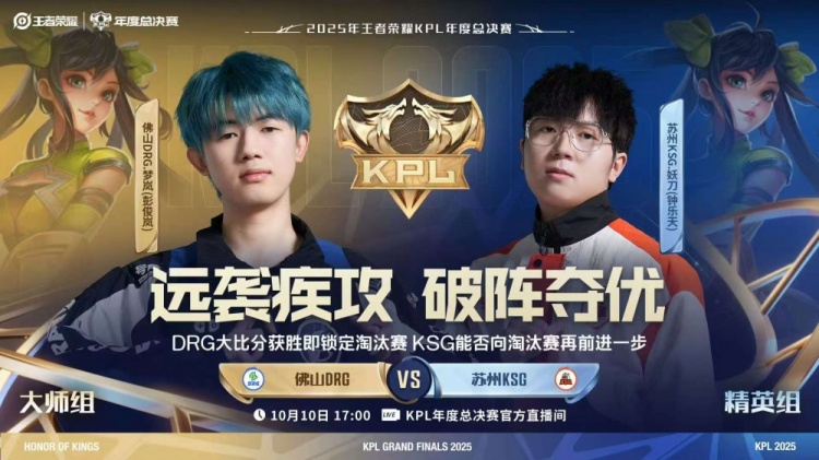 直播吧10月10日讯 2025KPL年度总决赛本场比赛是由佛山DRG对阵到苏州KSG!第一局:DRG前期中辅游走抓边掉点,KSG中期凭借团战将局势打回,但是DRG控下中立资源后凭借兵线推掉水晶拿下胜利!第二局:KSG前期拿到优势后DRG强行拖延KSG的节奏,KSG拖到后期凭借经济差打赢团战成功扳平比分!第三局:KSG前期通过张飞强开打出节奏,中期DRG及时止损但是KSG后期凭借流浪女娲输出成功先拿赛点!第四局:前期KSG天崩开局但是KSG凭借双边体系拖到后期,后期老夫子不断大招强开抓机会成功帮助KSG拿下胜利!
