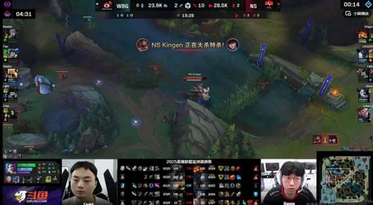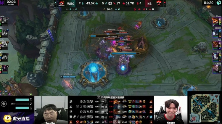 直播吧10月10日讯 2025年ASI亚洲邀请赛来到淘汰赛阶段,今天的第一场比赛是LPL独苗WBG对阵LCK的NS!