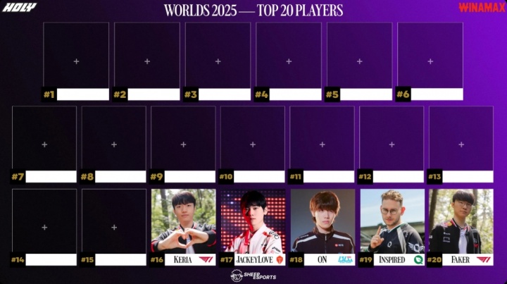 卫冕双料世界冠军、五届世界赛冠军李相赫(Faker)将迎来他的第十次世界赛之旅。然而,这位“史上最佳”(GOAT)选手职业生涯中首次需要经历入围赛阶段的比赛。今年对T1来说并不顺利。LCK杯赛阵容调整,战队状态起伏不定;春季赛表现强劲,Faker在季中赛中表现出色;但夏季赛季后赛却令人失望——先是惨败给HLE,随后又与Gen.G展开激烈较量,最终落败——最终T1沦为LCK四号种子。Faker依然是Faker,将他排除在榜单之外无疑是一个错误。他最终位列榜单前二十。