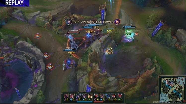 【20:06】中路混战,Diable卡莎被抬但DK没能将其秒杀,BFX轻松打出0换4,推掉DK中路一塔,回头吃掉厄塔汗,经济领先5k。