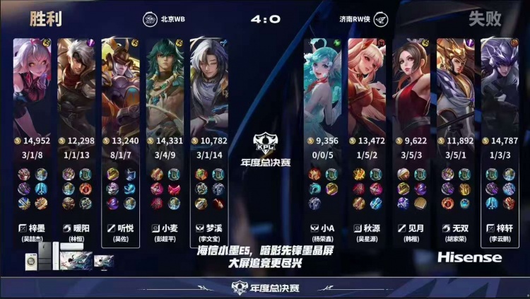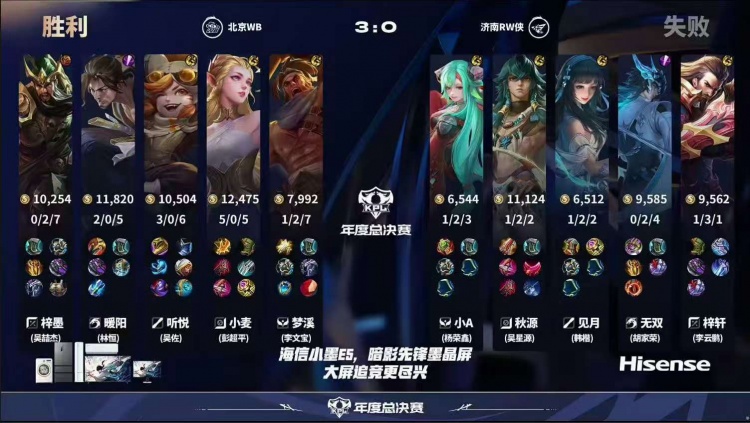 直播吧10月12日讯 2025KPL年度总决赛突围赛,本场比赛是由北京WB对阵到济南RW侠,败者离场 RW能否调整状态战胜WB,让我们一起期待!第一局:RW双方各WV打的有来有回,但是中期龙团WB再次拿下优势后成功利用龙兵推掉水晶拿下胜利!第二局:WB凭借团战配合多次打赢团战控下资源打出节奏,后期RW团战完全顶不住被WB轻松拿下!第三局:RW前期拿到优势但是龙团被WB打回,WB随后利用龙兵完成推进,WB拿下暴君后拿下比赛胜利!第四局:双方前期有来有回,中期梓墨影强换阿离帮助WB成功拿下胜利!