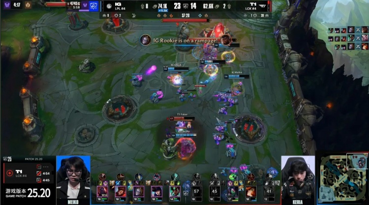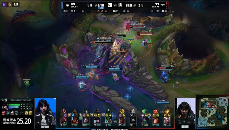 直播吧10月14日讯 2025全球总决赛入围赛,由LPL四号种子iG对阵LCK四号种子T1!